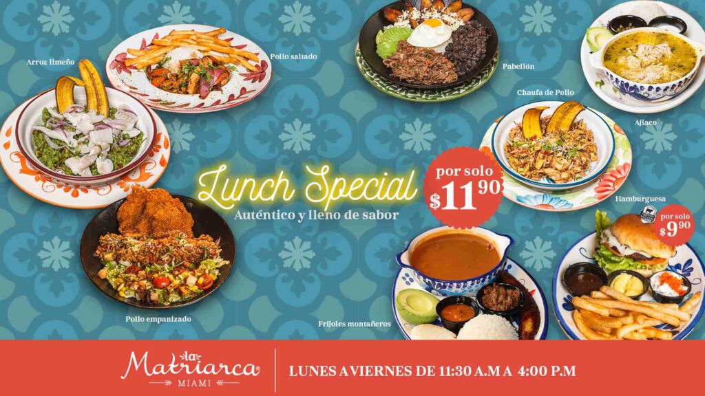 If you’re craving the authentic taste of Colombian cuisine and happen to be in Miami, you’re in for a real treat! Our restaurant, celebrated for its traditional favorites like crispy chicharrón, hearty bandeja paisa, and delicius ajiaco, is now offering an incredible Lunch Special for only $11.90. It’s the perfect way to enjoy the flavors of Colombia without spending a fortune!