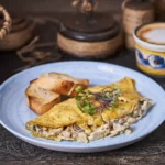Omelette con pollo y champiñones