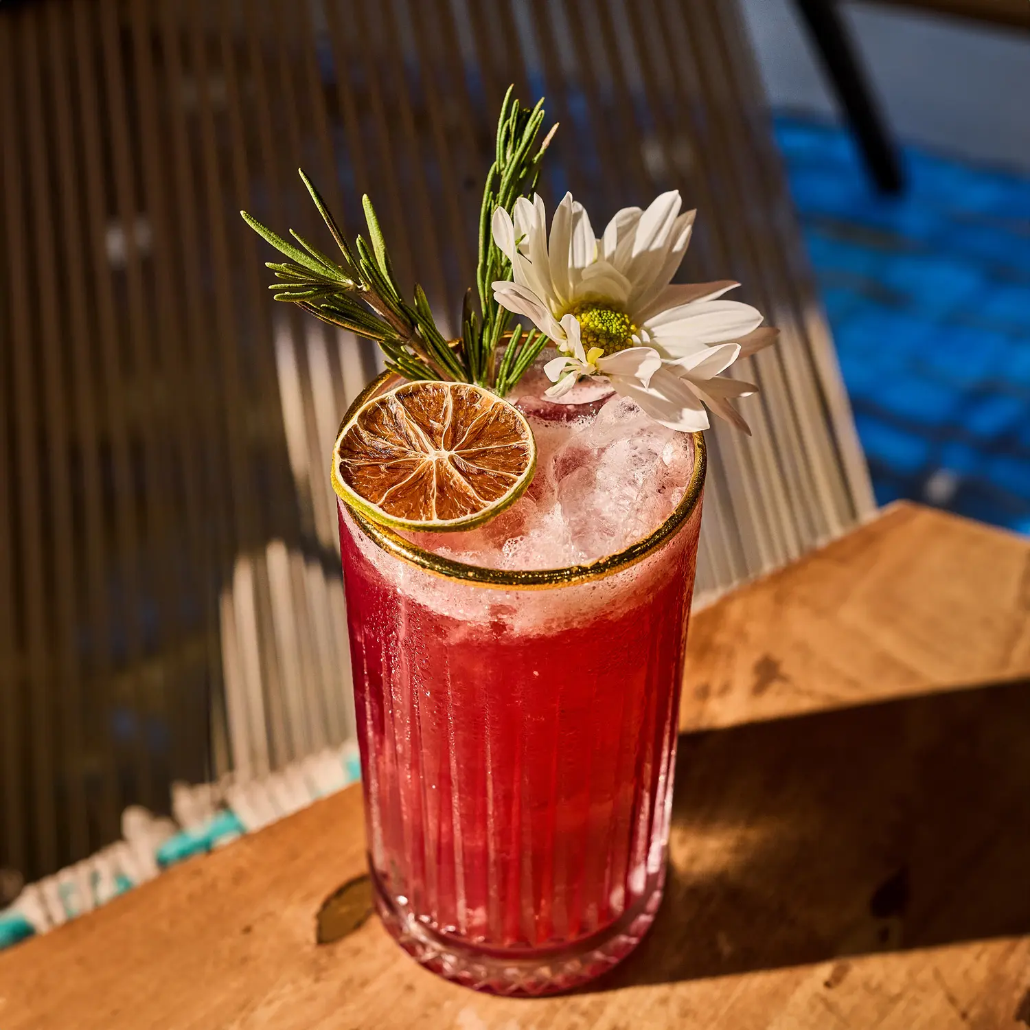Mezcla de whisky, mistella, mix de limón con reducción de flor de Jamaica y hierbabuena.