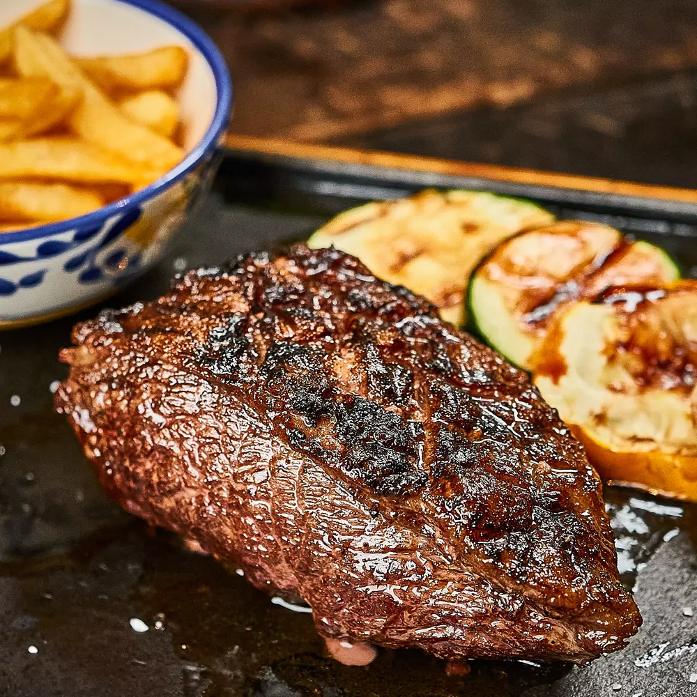 Todos los cortes de carnes están acompañados de vegetales asados o ensalada fresca y alguna de estas guarniciones: Papa francesa Papa rústica Papa sour cream Papa criolla