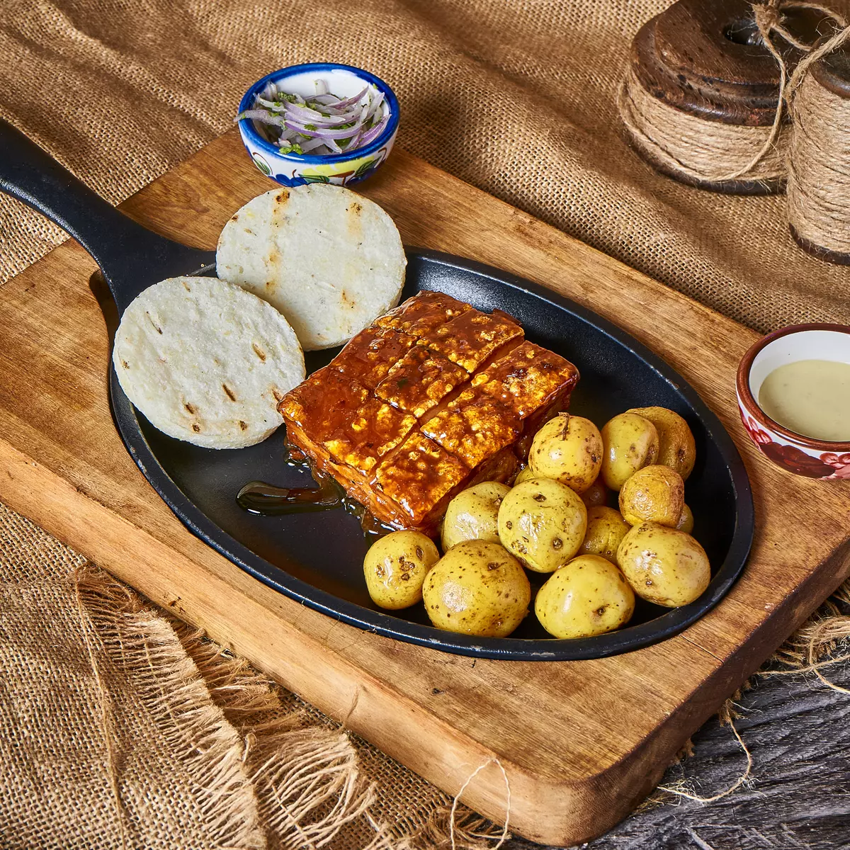 Cocción al vacío su propia grasa, endulzado en panela. Receta de La Matriarca.